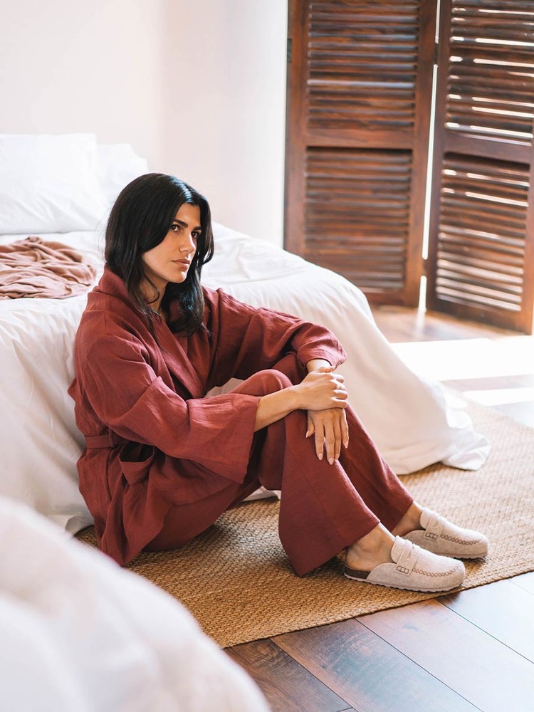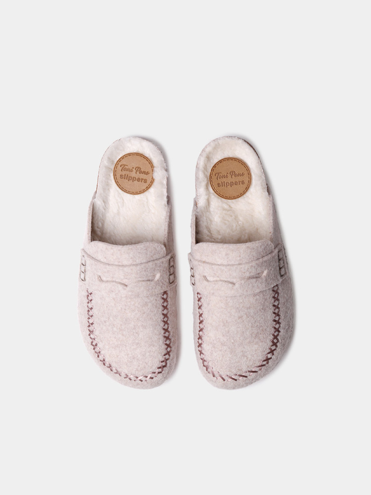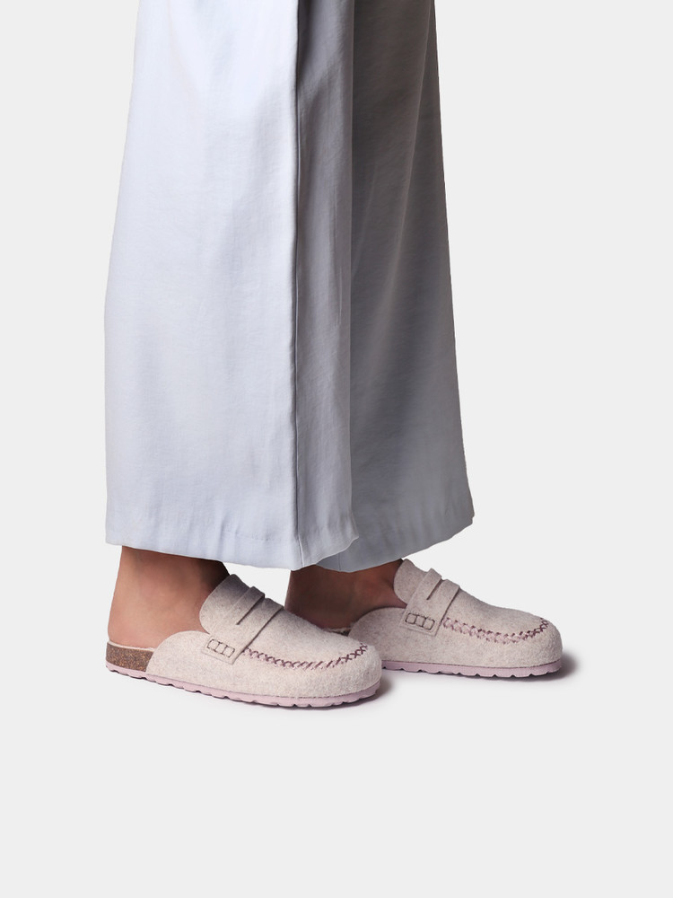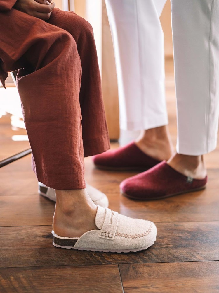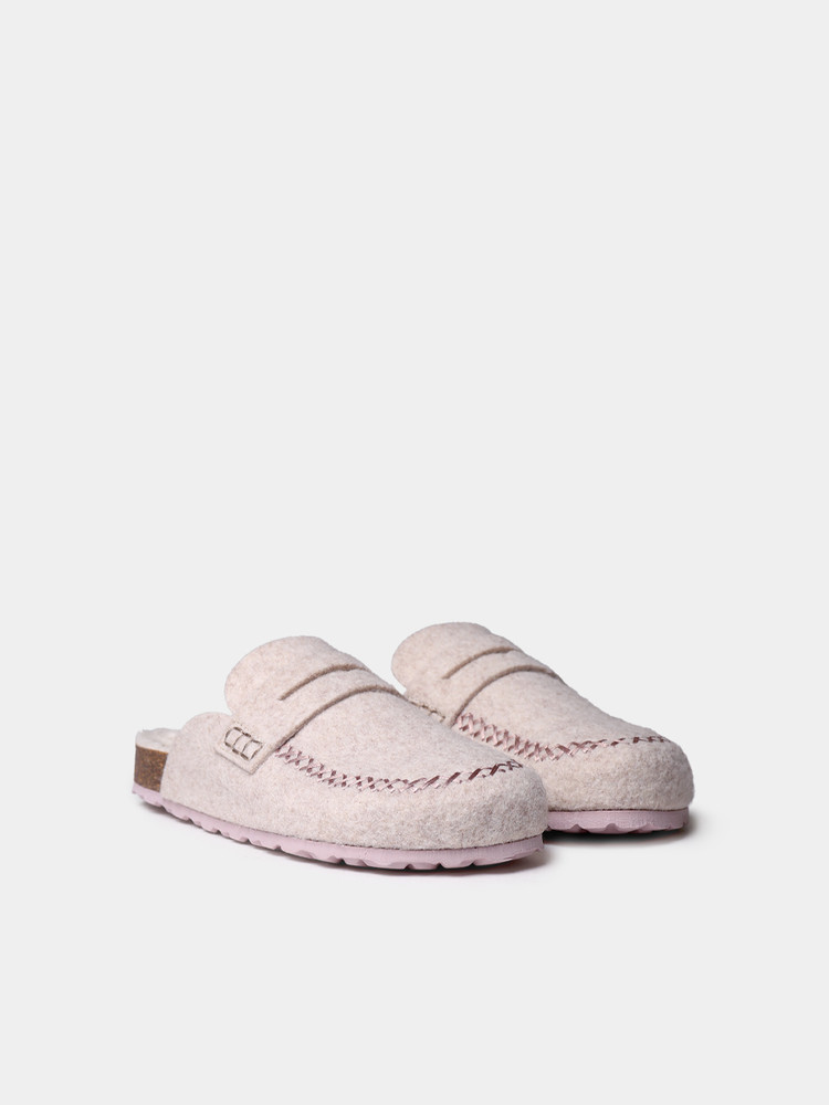 GANDESA. 이 여성용 클로그 스타일 슬리퍼는 펠트 소재로 제작되었습니다. 코르크와 EVA 밑창의 총 높이는 3cm입니다. 깔창은 펠트 안감으로 되어 있어 더욱 편안합니다.